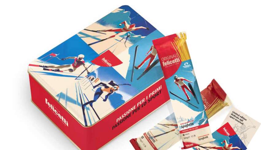Alla vigilia della stagione delle grandi competizioni sulla neve, Felicetti porta sugli scaffali della moderna distribuzione una limited edition dedicata agli sport invernali: tre formati di pasta della linea Originale – spaghetti, eliche e penne rigate – in quattro pack inediti, ciascuno ispirato a una diversa disciplina: salto con gli sci, sci di fondo, biathlon e sci alpino.